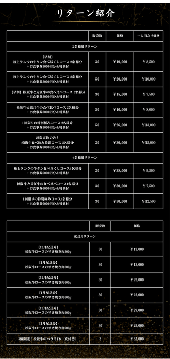 ・特別な4コースをご用意。厚さ20mm以上!超厚切り生タン/ハラミ/ヒレ使用の松阪牛極上コースも!