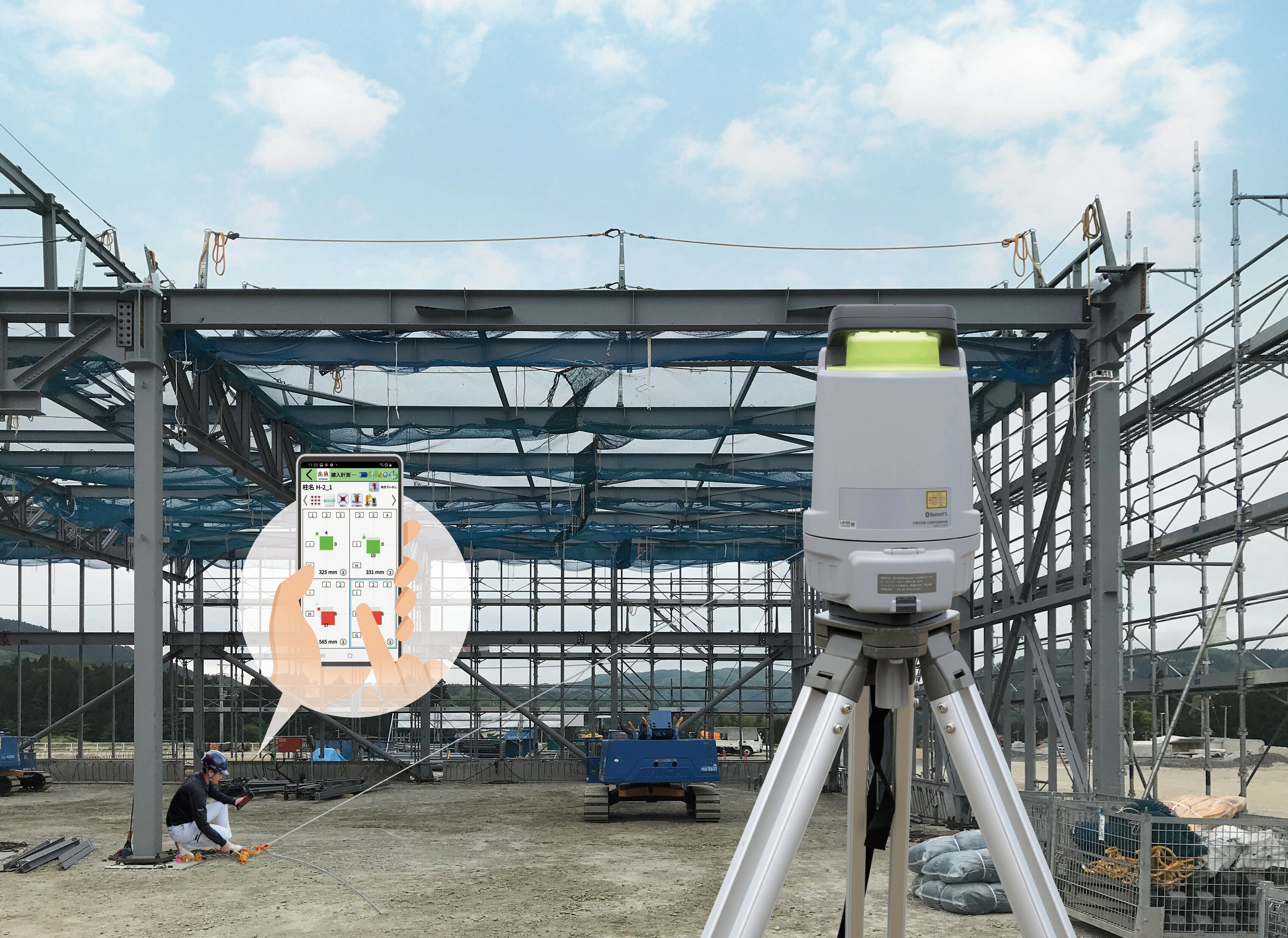 この度発売する『楽直』では、建築向け高精度位置出し機『楽位置』を操作することで、煩雑で手間の掛かっていた鉄骨建方作業を、“1人で・素早く・楽で簡単に”行えるようになります。また、計測結果もワンタッチでデジタルデータとして『楽直』に保存できますので、作業結果の“デジタルエビデンス化”にも最適です。