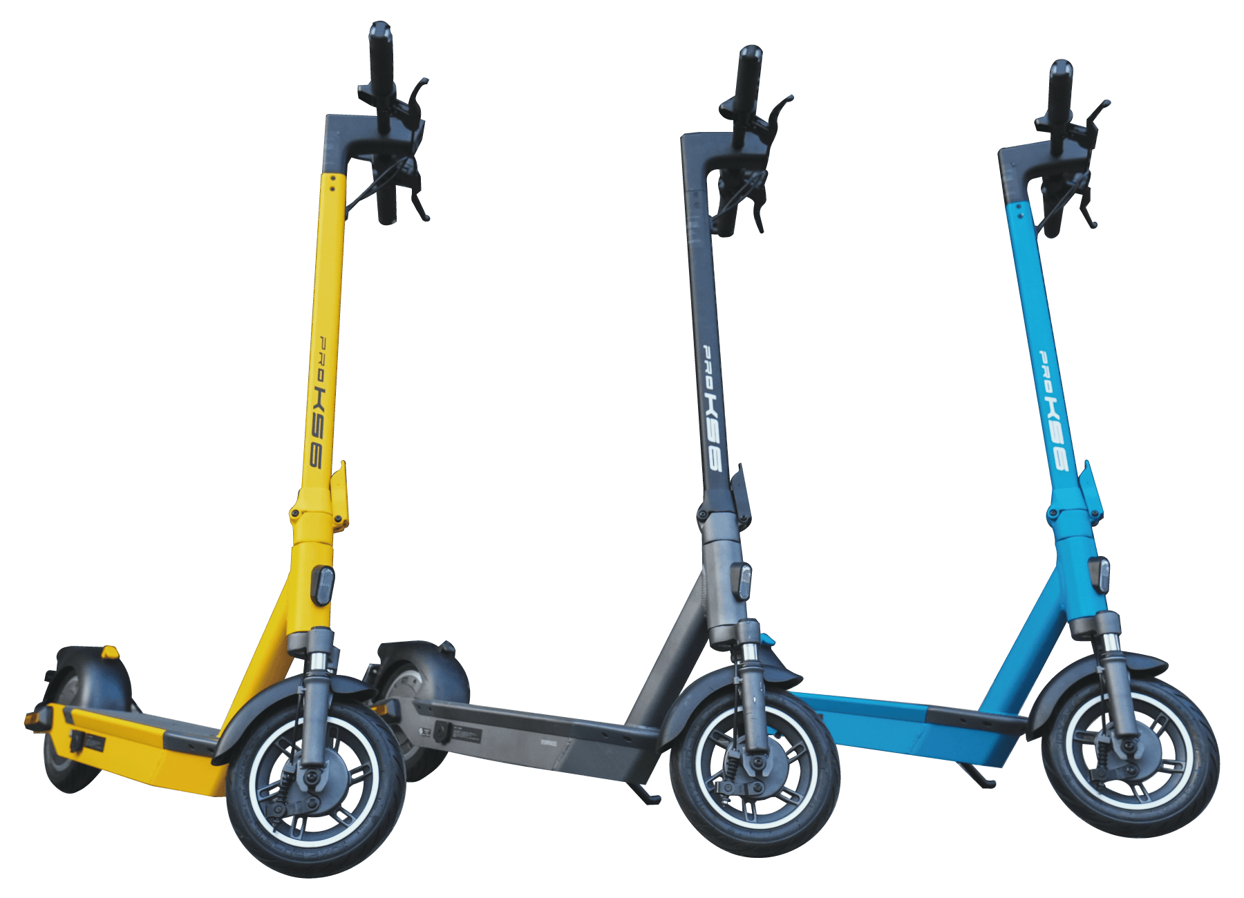 KS6 PROは、運転免許証を取得されていない方や通勤前のヘアスタイルの乱れなどが気になる方にお勧めの特定原付モデルの電動キックボードです。1回の充電で航続距離60km。モーター出力は500Wと圧倒的なパワーを備え坂道が多い日本の道路でもラクラク走行することが出来ます。道路運送車両法の遵守はもちろん、実証実験を繰り返し行った当社ならではの日本専用モデルになります。