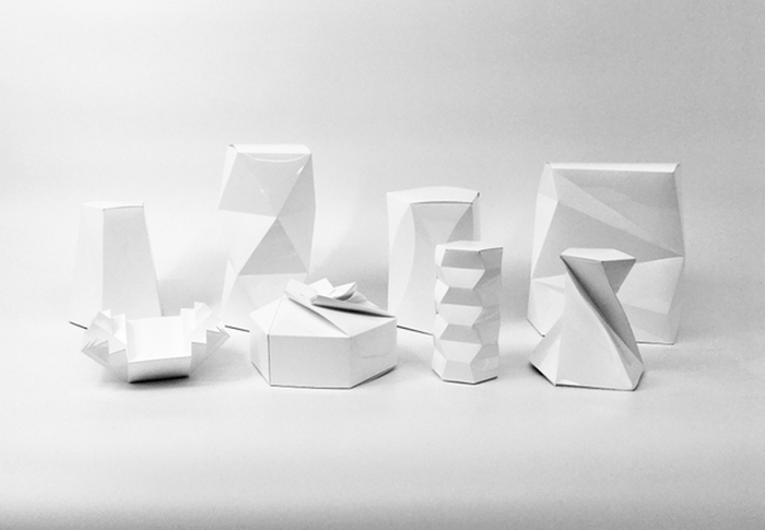折りの幾何学的なデザインが目を引く立体造形のイベント装飾品の製造が可能です。