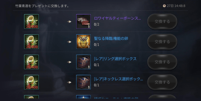 「竹葉青酒」交換期間:2月2日(火) メンテナンス後 〜 3月2日(火) 5:00