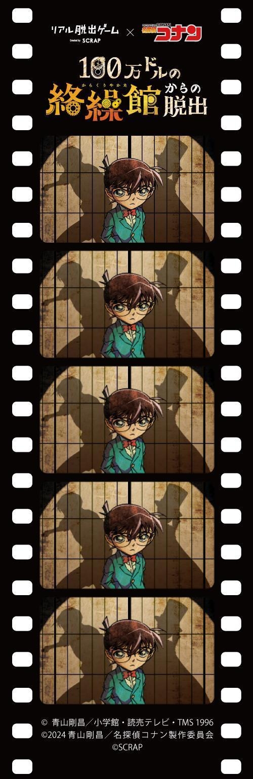 株式会社SCRAP(本社:東京都渋谷区 代表:加藤隆生)は、大人気テレビアニメ「名探偵コナン」とコラボレーションしたリアル脱出ゲームの最新作『100万ドルの絡繰館(からくりやかた)からの脱出』の、本イベント用に「コナン」「平次」「怪盗キッド」の3人が描き下ろされた新ビジュアルを公開いたします。