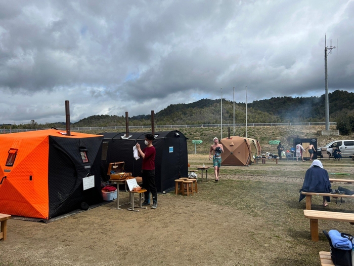 2022年3月19日・20日に京都府南丹市の旧吉富小学校で、テントサウナ10台以上とサウナ小屋が並ぶ「SAUNA NO TSUDOI@八木町」に《IESAUNA》が出展致しました!情緒あふれる雰囲気のもと、サウナに入り、限定サ飯と限定物販で整い後も大満足の様子でした。