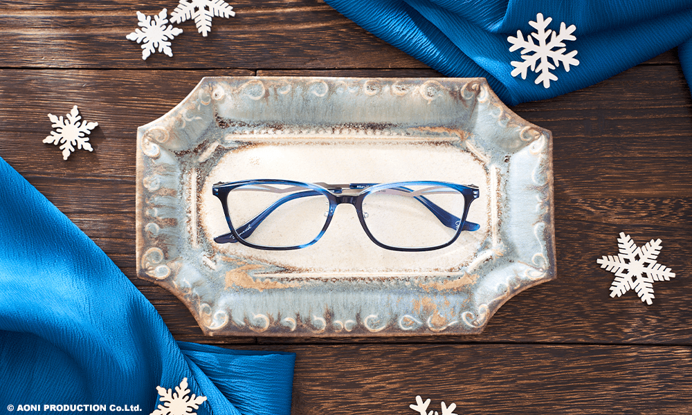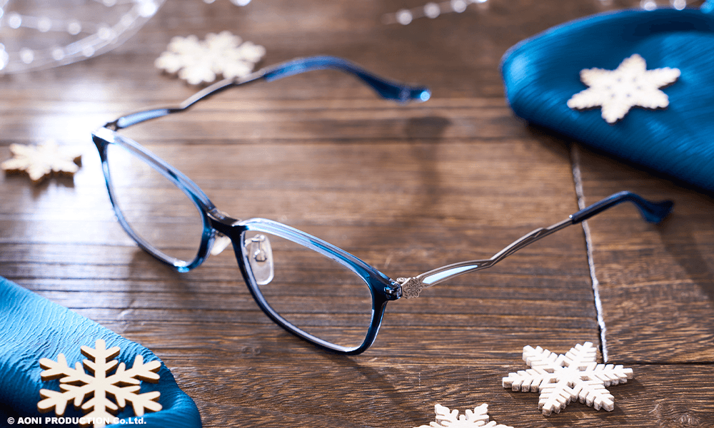 ・眼鏡拭き、眼鏡ケースにはそれぞれロゴと雪の結晶をデザイン