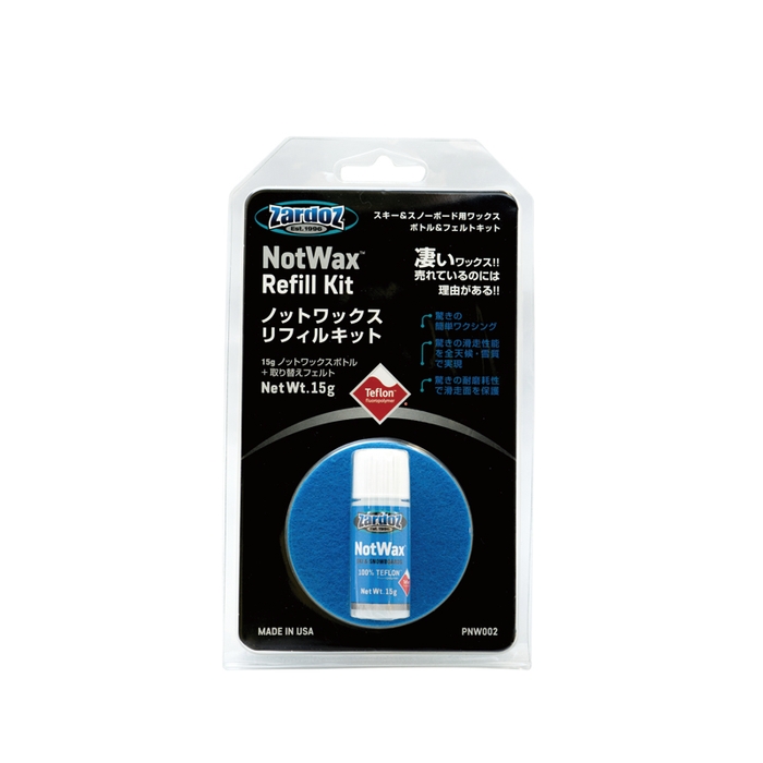 フローロオイル100%素材のスキー・スノーボード用滑走剤。ノットワックスは全ての雪温で使用可能ですが、特にウェットな雪で高い滑走性能を発揮します。