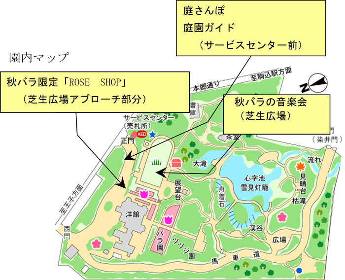 お問い合わせは旧古河庭園サービスセンター(03-3910-0394)までお電話にてお願いいたします。