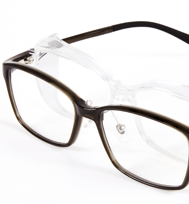 外出時はフードを付けて花粉・ 飛沫対策メガネとして、室内ではフードをはずして普段用のメガネとして、より使いやすくなりました。