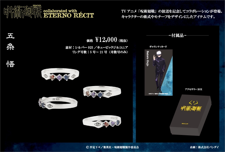 TVアニメ『呪術廻戦』より本格アクセサリーシリーズが発売 各キャラクターのイメージをモチーフにした シルバーアクセサリーが登場
