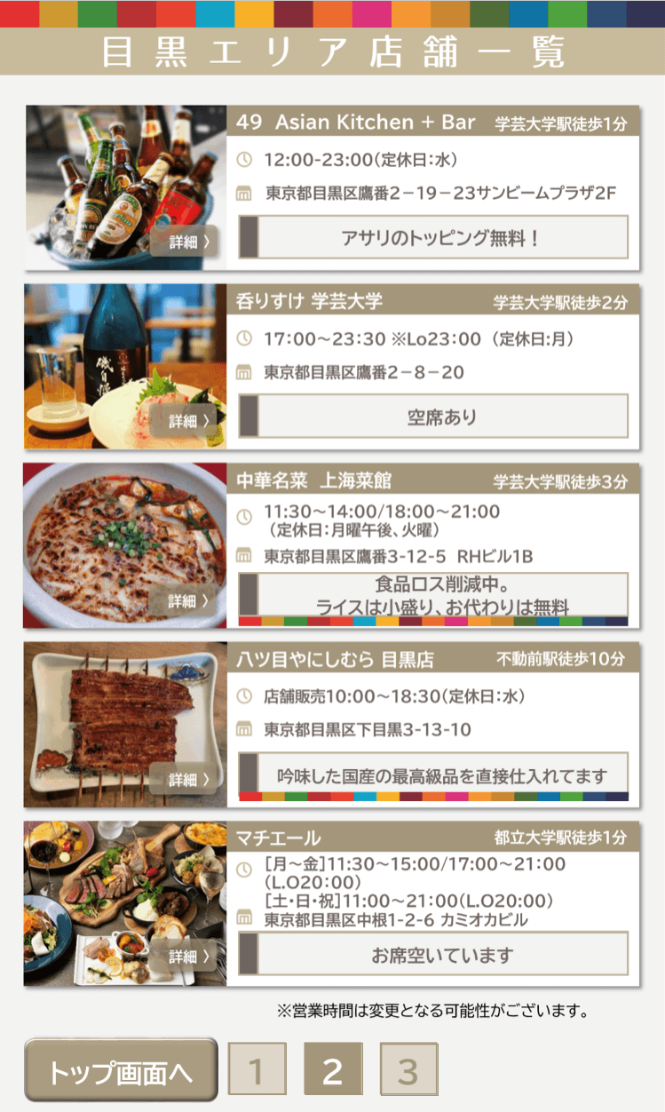 *実証実験店舗 (目黒エリア:12店舗 たまプラーザエリア:9店舗)