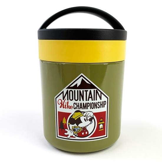 ミッキーの保温ジャーです。カーキカラーがオシャレで、料理姿のミッキーがいます♪持ち手もついているので、そのまま持ち歩くこともできちゃいます。