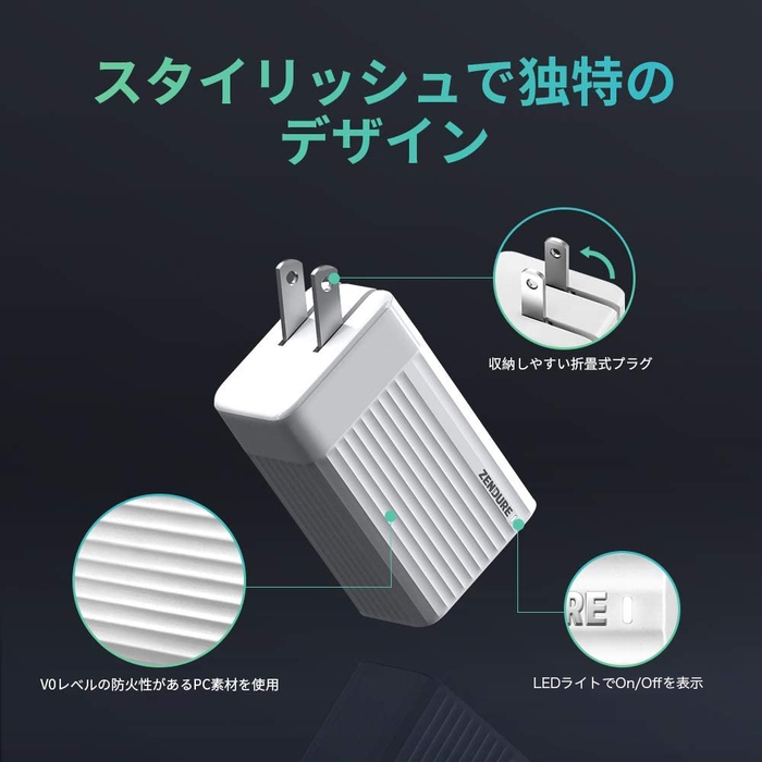 ZENDURE SuperPort S2はGaN(窒化ガリウム)技術を採用する事により、65Wの高出力充電とコンパクト軽量を実現した高速ACアダプタ充電器です。