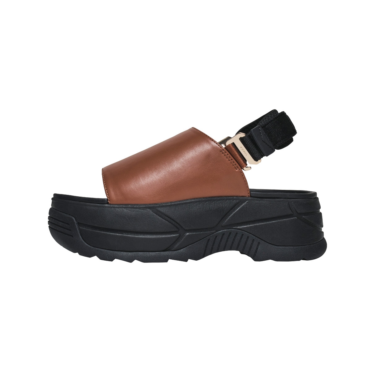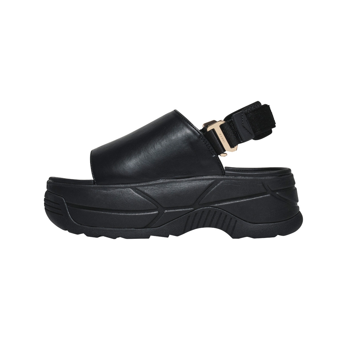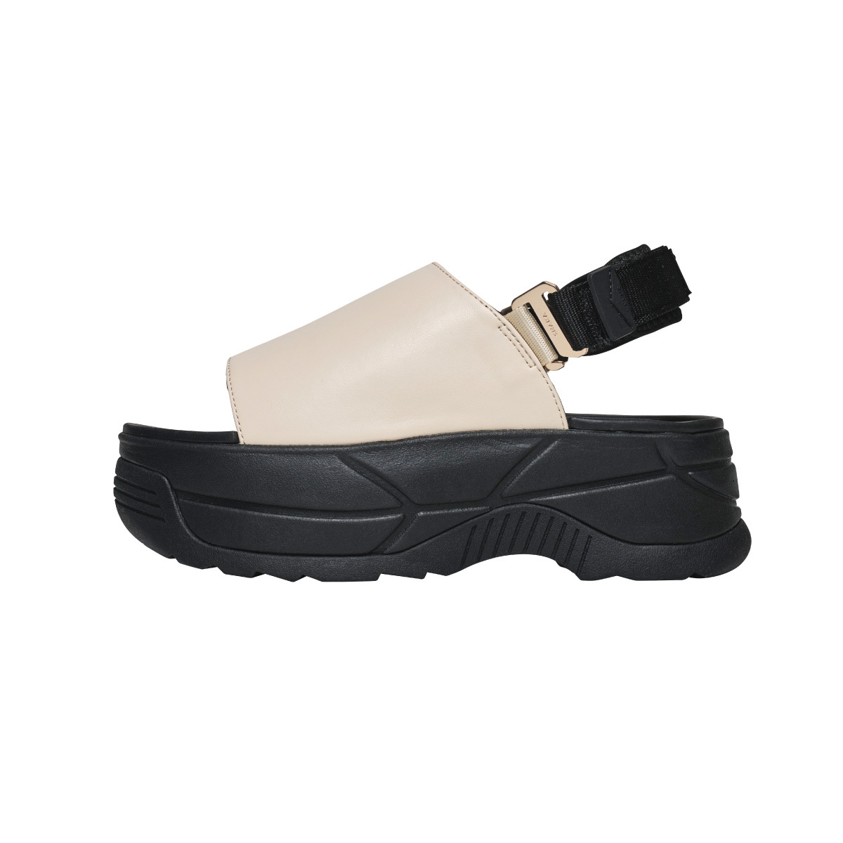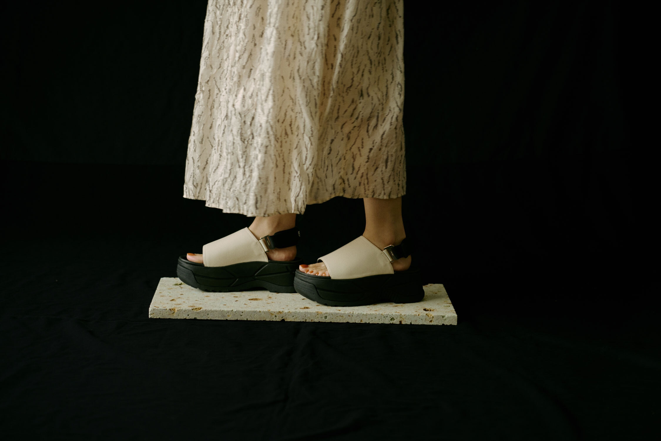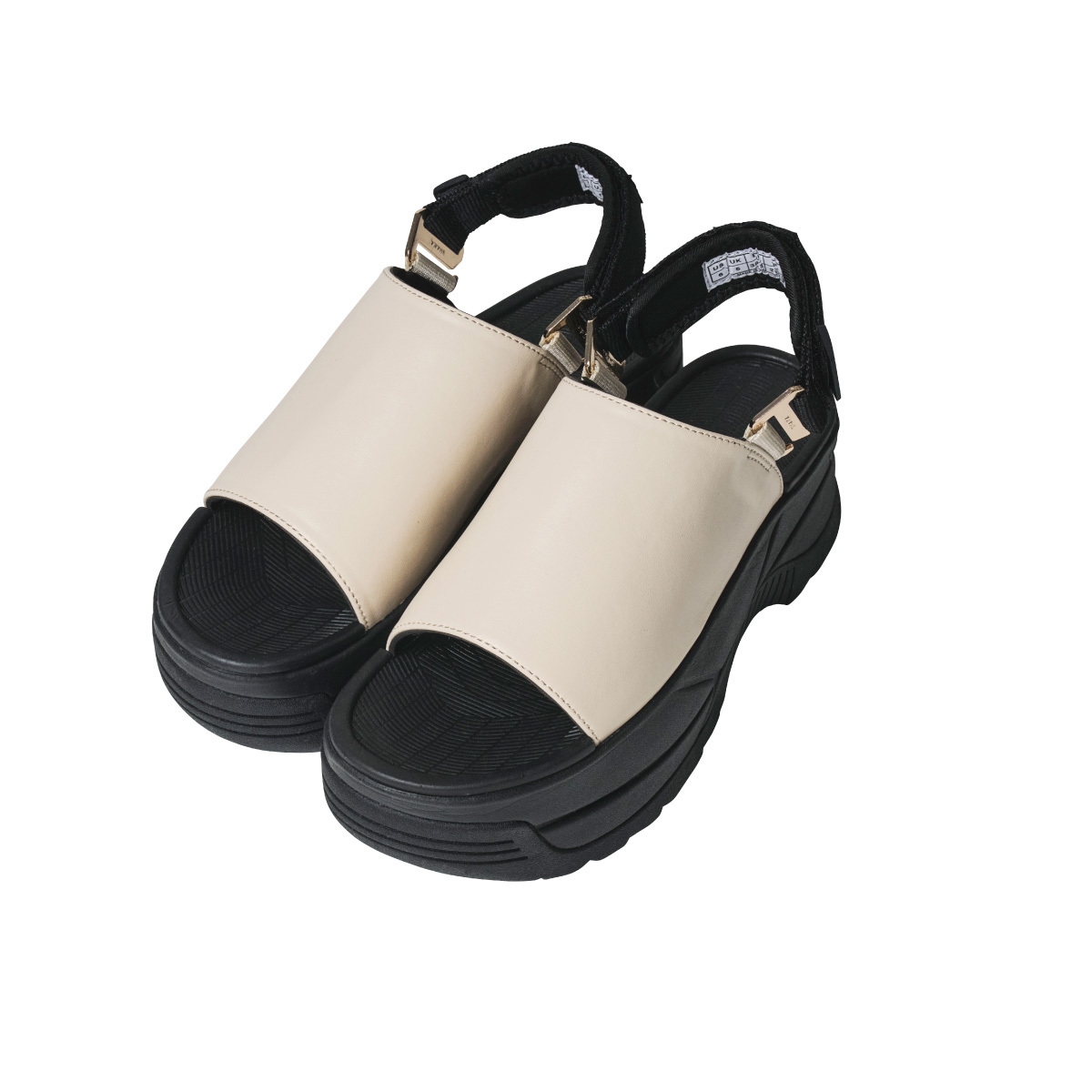 リラックス感とモダンなムードを兼ね備えた今作は、アッパーに微光沢PUレザーのワイドなワンストラップを使用。