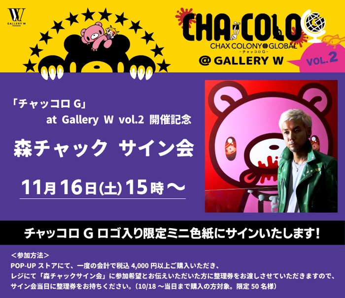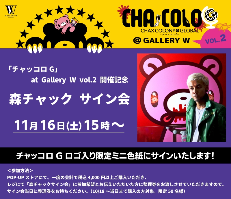 原作者「森チャック」が、今回のPOP-UPストアのロゴ入り限定ミニ色紙に眼の前でサインを書いてお渡しするイベントです。