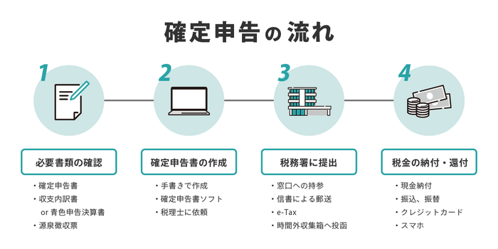 e-Tax(電子申告)・確定申告ソフト・手書きなど、自分に合った方法で申告書を作成します。会計ソフトを使うと、計算ミスや書類漏れを減らすことができます。不動産所得についても、自動で減価償却費を計算してくれるソフトを使えば、負担が軽くなるでしょう。