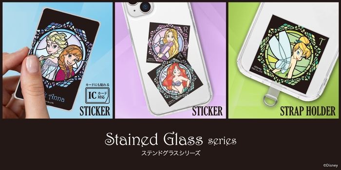 ディズニーキャラクターデザインのステンドグラス風デザインのステッカーやスマホ用ストラップホルダーを株式会社PGAが3月22日より一般販路向けに発売開始
