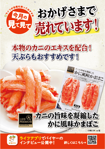 【ライフ】リピーター急増!?発売以来30万個突破の大ヒット商品「ライフプレミアム かに風味かまぼこ」