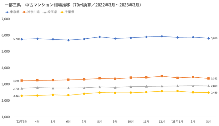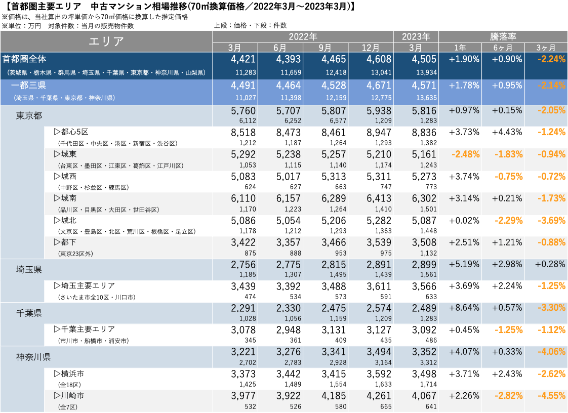 「マンションレビュー」2023年3月 全国主要エリア/47都道府県 中古マンション相場推移を発表