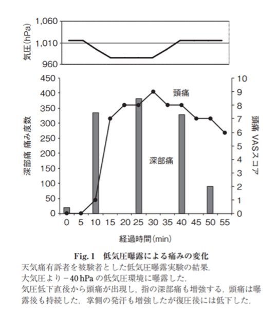 名古屋大学動物実験支援センターでの佐藤純氏の研究では、気圧、気温のわずかな変化が、人々の様々な慢性痛に影響を与えていると調査データも発表されています。