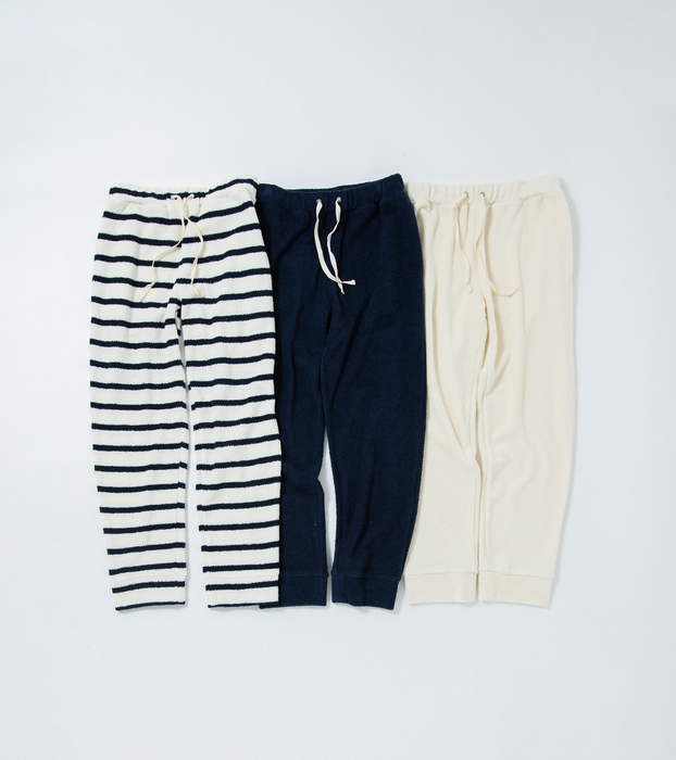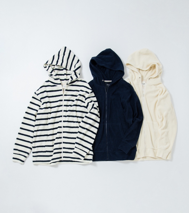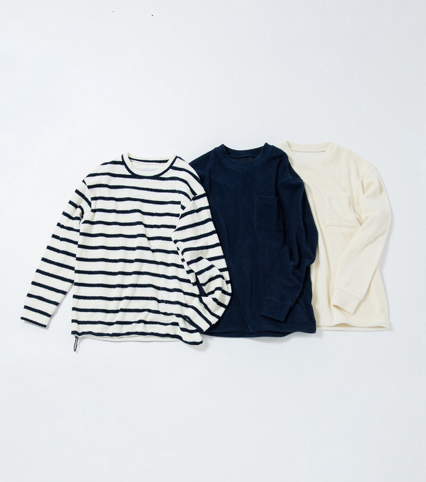 ふんわりとやわらかな風合いがくせになるバルキーパイル素材は、フーディをはじめ、クルーネックTEE、イージーパンツのデイリーに使えるアイテムを展開。お気に入りの型を組み合わせてセットアップ使いしたり、お手持ちのアイテムと合わせて単品使いしても着回しやすく、ワンマイルウェアとしても着用できます。抗菌/防臭加工を施したうれしい機能付き。リンクコーデもできるユニセックスサイズ展開です。
