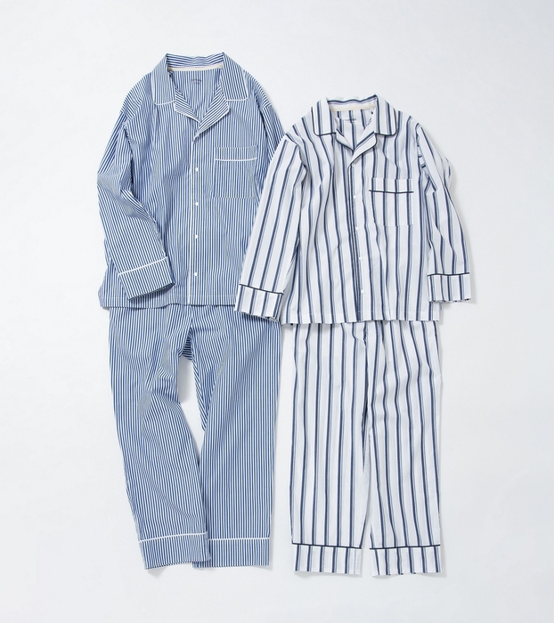 なめらかでさらっとしたナチュラルな風合いが心地よい、コットン100%のブロード素材を使用したパジャマシャツ&イージーパンツ、ワンピース。肌に馴染の良い素材に加え、生地にRepur®加工を施し抗菌/防臭機能も付いて、一日中快適な着心地をもたらします。またフロントには、ボタンの開け閉めが楽チンで着やすいドットボタンを採用。そして、SHIPS any & cozyのネームは織りネームではなくプリントネームにして、肌に直接触れてもストレスなく着用できるように、細部にまでこだわりました。清涼感のあるストライプ柄やパイピングデザイン、白のドットボタンを配してミニマルでクリーンな表情のこのアイテムは、ちょっとしたお出掛けにも対応できます。パジャマシャツ&イージーパンツは、睡眠時の動きや寝返りなどを考慮したパターンを採用することで、寝ている時も窮屈感を感じず、腕を上げた姿勢で寝ても裾がめくり上がることがないように設計し、快適な睡眠をサポートします。