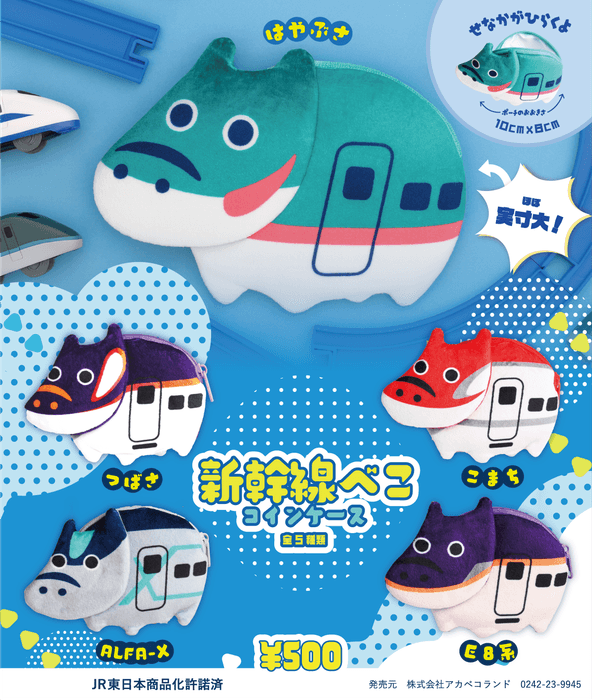 E5系(はやぶさ)/E6系(こまち)/E8系/E3系(つばさ)/ALFA-Xなどのカラーリングを、赤べこ型のコインケースに再現しました。