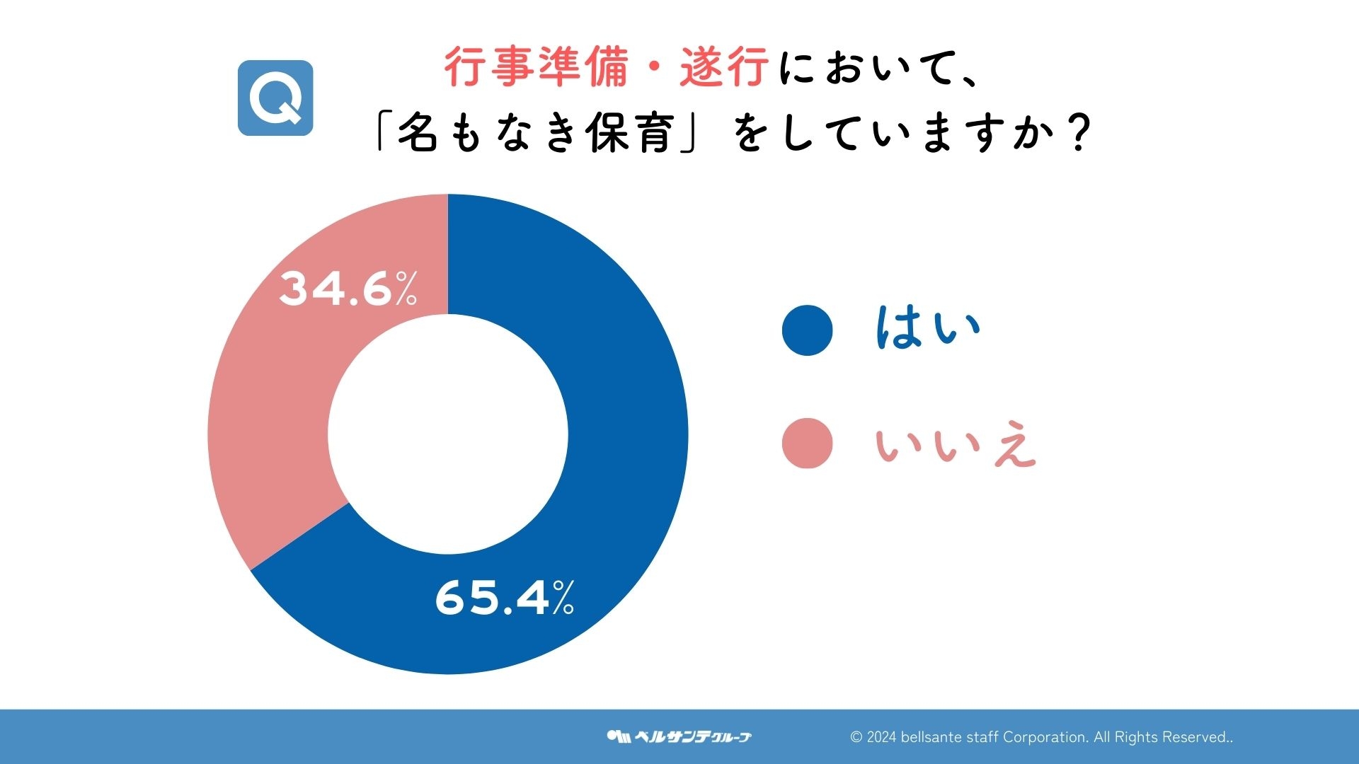 保育園では、年間を通してさまざまな行事が実施されます。65.4%の保育従事者が行事準備・遂行における“名もなき保育”を行っているという結果になりました。