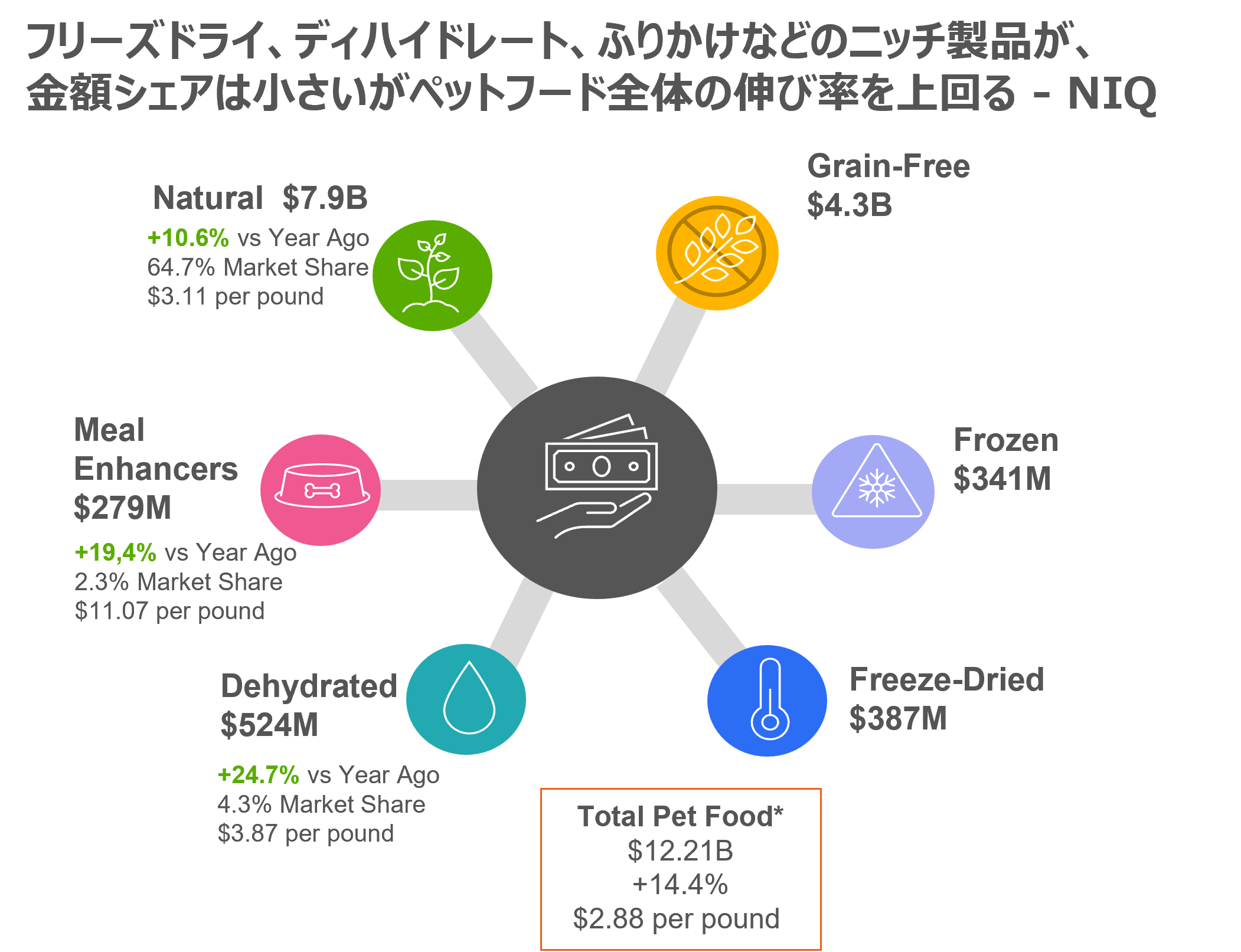 USペット市場では「ディハイドレート」、「フリーズドライ」、「エアドライ」といった ユニークな保存技術のペットフードが22年には金額ベースで24.7%増加 - アメリカにおけるペット関連消費調査より -