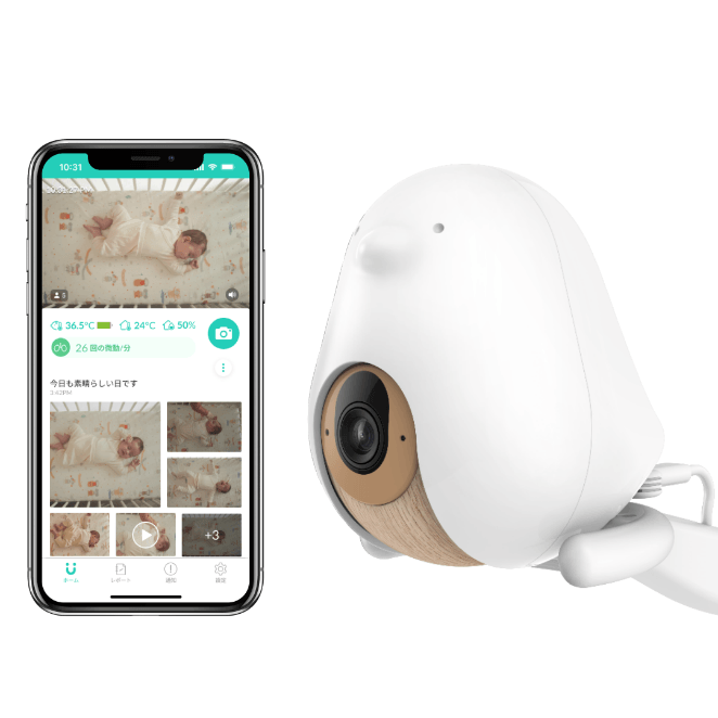 CuboAiスマートベビーモニターは、かわいい小鳥型の本体にAI人工機能技術を詰め込んだ高機能スマートベビーモニター!15万人のママパパに支持される子育ての頼れるパートナーです。