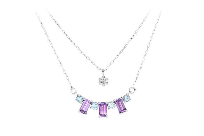 【be shy】に使用されている石はダイヤモンド、アメシスト、アクアマリン。