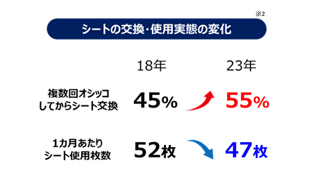 ※4 2023年ユニ・チャーム調べ。当社デオシートしっかり吸収レギュラーとの月間使用枚数から試算。