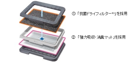 - 「強力吸収・消臭マット」採用で消臭効果が長時間持続!