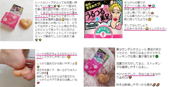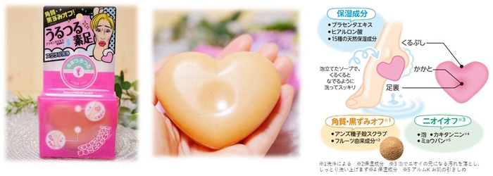 足の気になる「角質」、「黒ずみ」をハート型せっけんで丸洗いできます。