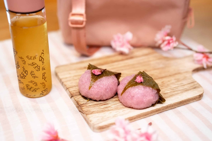 「花より団子」といわれるほど、お花見をより一層楽しむために欠かせない甘味には、土浦市内にある創業70年、多くの地元の人に愛され続けてきた和菓子店「志ち乃」の桜餅を用意します。水上で桜を見ながら楽しめるように、片手でも食べられる小ぶりのサイズです。茨城の猿島台地を中心に生産される濃厚な香りとコクが特徴のさしま茶とともに楽しめます。
