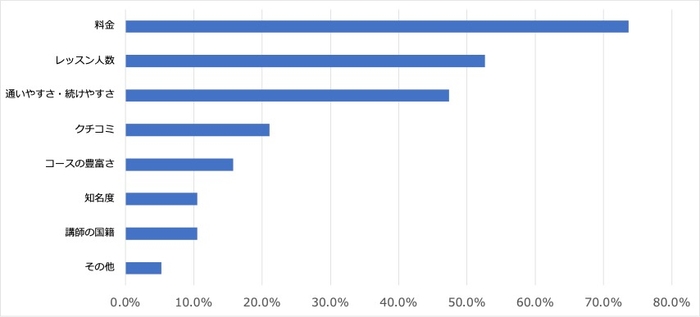 ■英会話スクールなどを選ぶ際に「レッスン人数」や「続けやすさ」「クチコミ」などさまざまなポイントを重視する人が多い