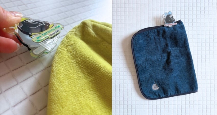 可愛いまもるさんのダイカットで、裏面にのみフックを通せるように穴をあけました♪