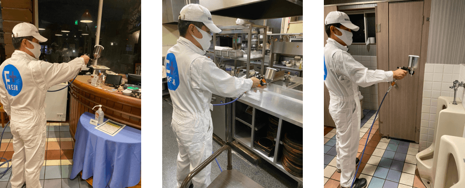 そしてこの度、よりお客様に安心してご利用いただきたいとの思いから、「除菌・除ウイルス・抗菌・抗ウイルス・消臭・防カビ・防汚」効果のあるONEの光触媒コーティングと、飲食店検索サイト「Retty」の安心・安全店舗まとめ特設ページへの掲載がセットとなった飲食店向けの新サービス「FRESHION FOOD(フレシオンフード)」の導入に致りました。