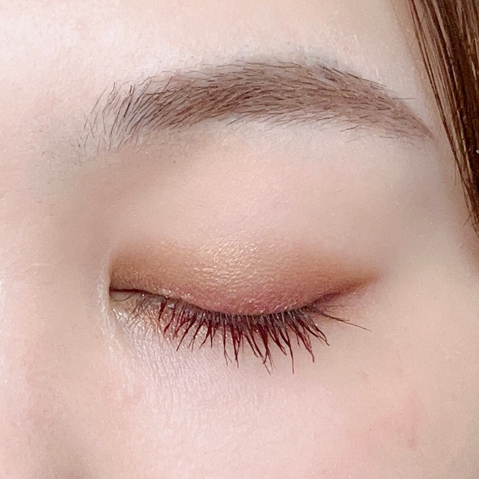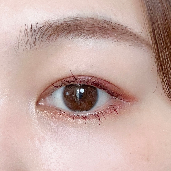 透明感のある優しい発色のカラーマスカラがエフォートレスな雰囲気を演出します。下まつ毛だけ、目尻だけなどポイント使いにもおすすめ!ボルドーのアイシャドーとの相性も◎