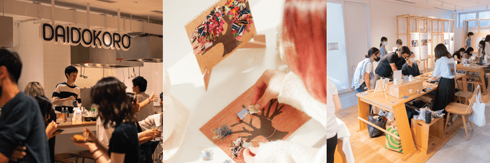 会場内では、sampaiが実施するアクセサリー制作ワークショップや子ども向け「職人すごろく」ワークショップなど参加者が直接素材に触れ、伝統や職人技術を感じられるプログラムを実施。QUESTION京都信用金庫8階DAIDOKOROでは、日本酒の試飲・飲食物のフードコート等を構え、ひとりでも子連れでもゆったりと楽しめる会場設計を行う。