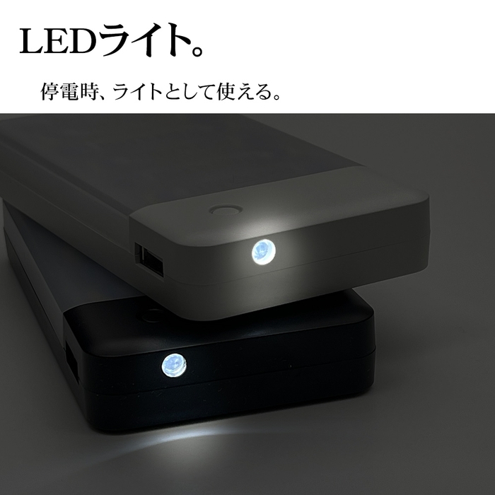 屋外や停電時等で充電が必要な場合に便利!LEDライトつきで、懐中電灯の代わりに!