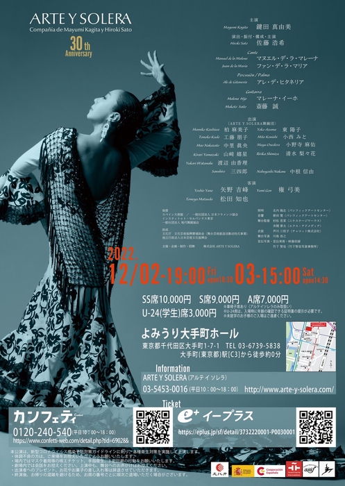 ARTE Y SOLERA(代表:鍵田真由美、佐藤浩希)主催、『Flamenco Caleidoscopio』が2022年12月2日 (金) ~2022年12月3日 (土)によみうり大手町ホール(東京都千代田区大手町1-7-1)にて上演されます。