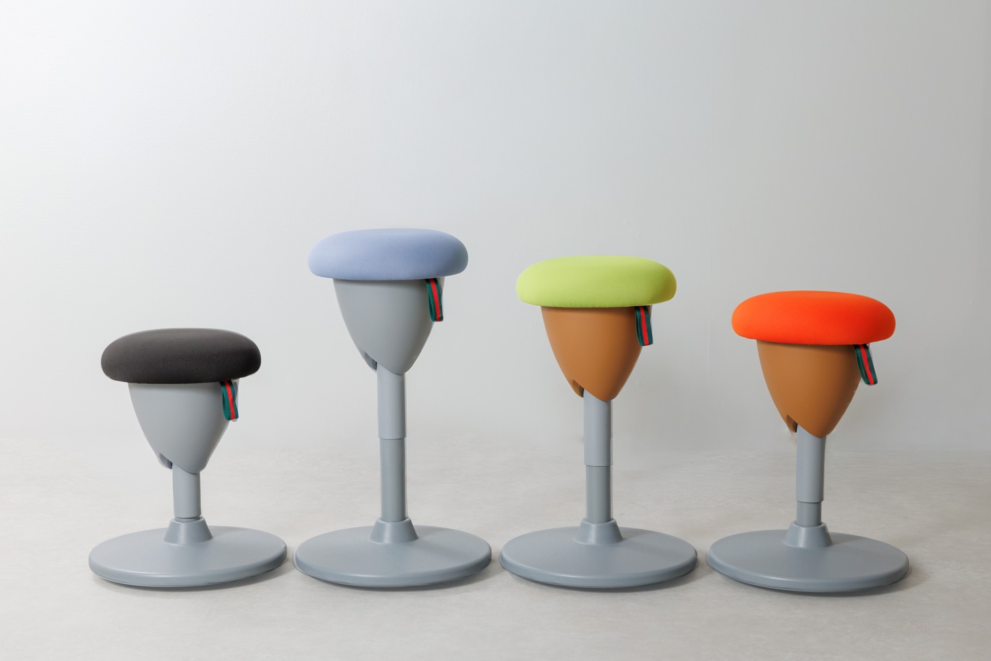 ■背もたれがないため、座るだけで自然と正しい姿勢を意識します。また、前後左右に360度回転するので、インナーマッスルを使う感覚に。