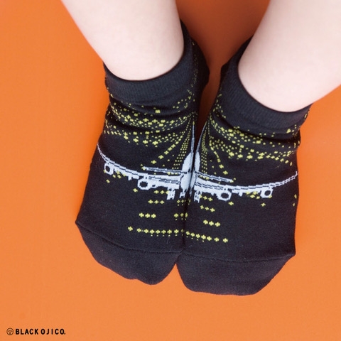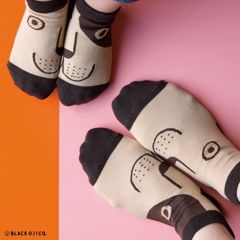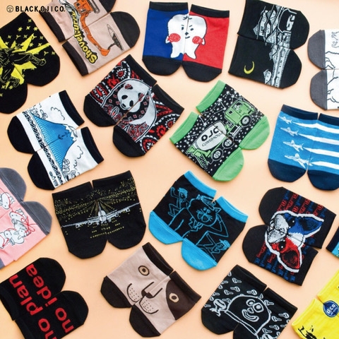 「OJICO」のセカンドラインである「BLACK OJICO」で展開中の「くっつくした」は、両足を揃えることで絵柄がつながるのが特徴。厚手でしっかりした生地は、はき心地も抜群な上に通常のくつ下に比べて伸縮率が非常に大きく、幅広いサイズをカバーできる設計になっている。