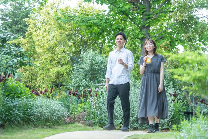 手で持って吸うだけで楽しめるスパウトパウチ式のため、ガーデンを散策しながら気軽に楽しむことができ、どの季節にもぴったりです。