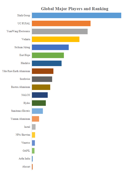 YHResearchのトップ企業研究センターによると、アルミ線の世界的な主要製造業者には、Xinfa Group、UC RUSAL、YuanWang Electronics、Vedanta、Sichuan Julong、East Hope、Yihe Rare Earth Aluminum、Hindalco、Southwire、Baotou Aluminumなどが含まれている。2023年、世界のトップ10企業は売上の観点から約62.0%の市場シェアを持っていた。