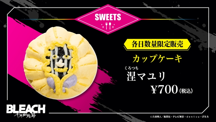 生クリームとマンゴークリームで涅マユリを表現しました。カップケーキはプレーン味となっております。