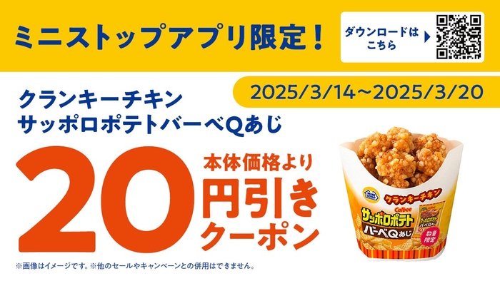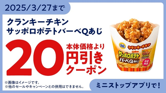 【ミニストップアプリ版モバイルオーダークーポンご利用でサッポロポテトバーベQあじ本体価格より20円引き】