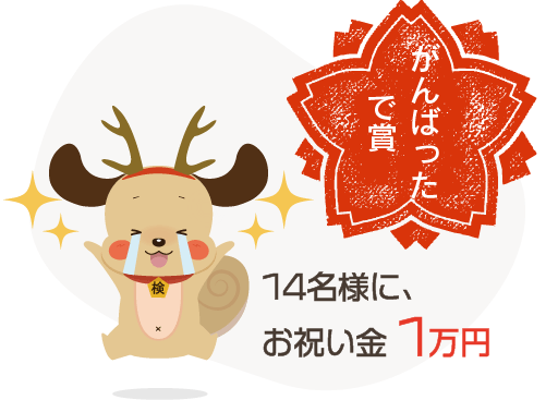 2022年度中に資格・検定を取得されたみなさまの中から、 14名様に「がんばったで賞」としてお祝い金1万円をプレゼント!