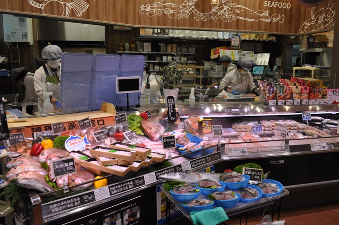 和歌山市場・岸和田近郊漁港から届く新鮮な生魚を活気あふれる売り場でご提供いたします。