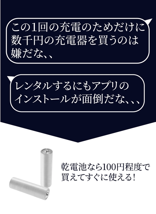 充電がなくなり、モバイルバッテリーも使えず一回のためだけにモバイルバッテリーを再度買ったり、面倒な手続きの上でレンタルしたりと。。