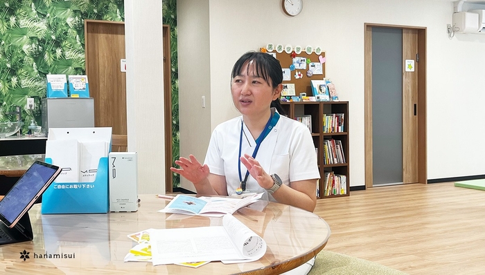 近年、性被害に関するニュースが多く取り上げられる一方で、性教育の遅れが課題となっています。こうした社会的背景を受け、まつしま病院はクラウドファンディングを活用し、思春期の子どもや若者が気軽に立ち寄り相談できる施設「KuKuNa」を2024年4月に開設しました。ハナミスイは、まつしま病院に商品を納品している関係から、今回KuKuNaを訪問し、室長の幸崎若菜様に取り組みや今後の展望について伺いました。